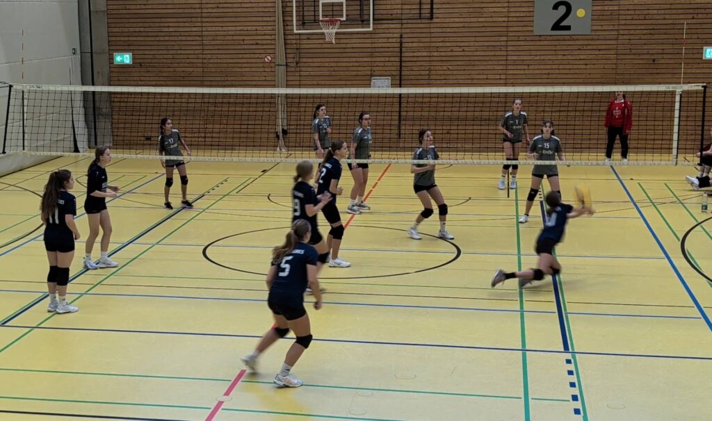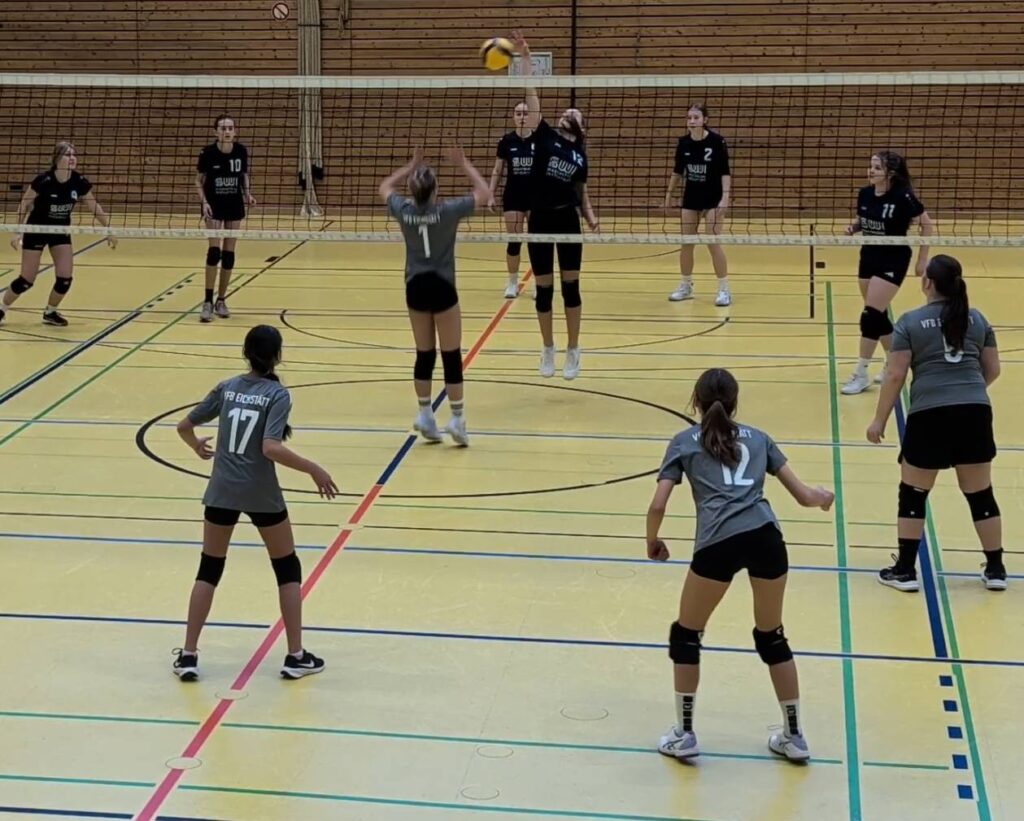Die erste Begegnung mit Neuburg II ging nach erheblicher Gegenwehr (8er Aufschlagserie!) im 2. Satz mit 2:0 (25:7, 26:24) an unsere U18w.